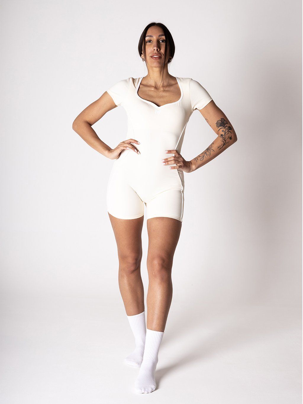 Zvýraznite svoju postavu a doprajte si sebavedomý pocit v našom Victory Motion Momentum Unitard Overale v béžovej farbe. Tento štýlový overal je navrhnutý tak, aby krásne obopol telo, zvýraznil ženské krivky a zároveň poskytol pohodlie počas pohybu aj bežného nosenia. Elegantný strih vytvára čistú siluetu a pôsobí moderne, športovo a žensky zároveň.